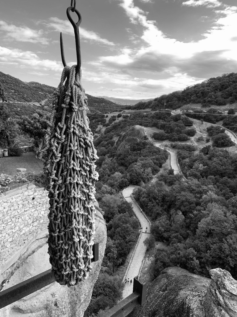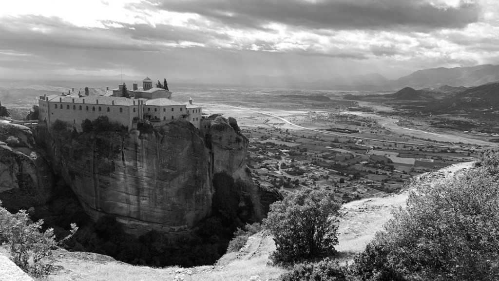 But there was a trade-off. I was the group’s only Greek-speaking member. So, while he took the lead on the paths, I stepped forward at every stop to chat, trade courtesies and translate. We climbed to the Monastery of the Holy Trinity, then to Varlaam Monastery. We poked our heads into dark caves, looking for bat shit (none), and hiked through damp, narrow passes where the sun never enters, and where temperatures plummet.