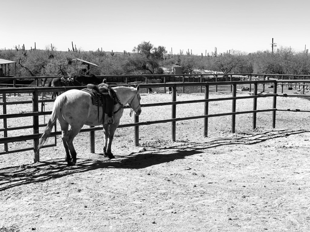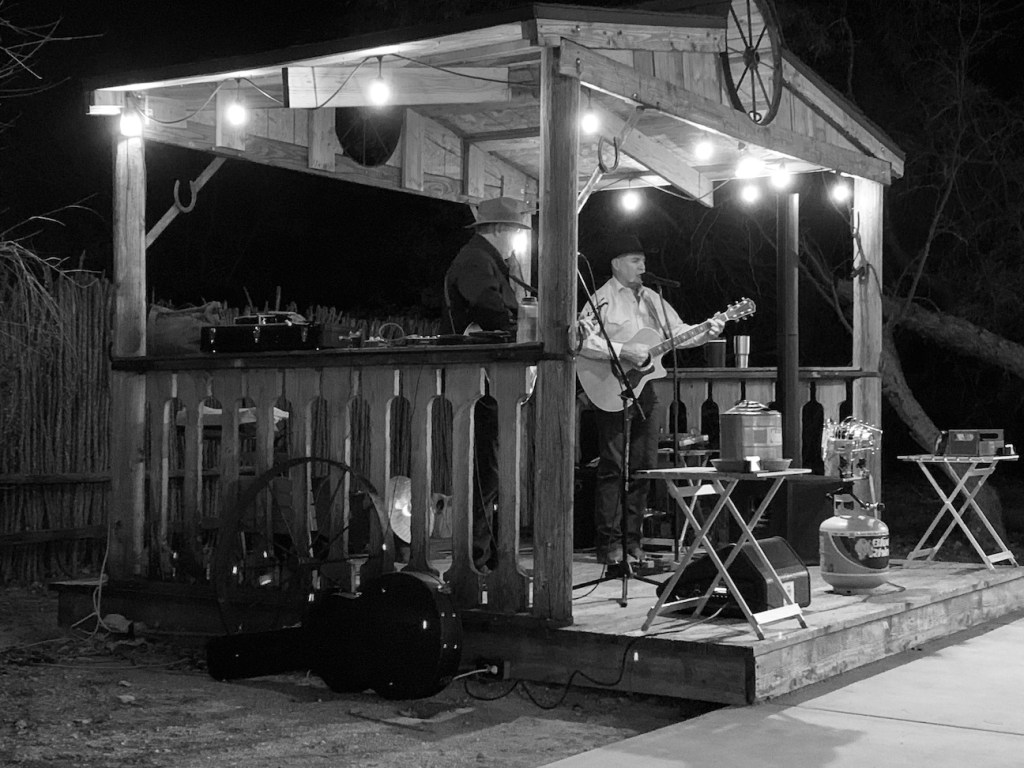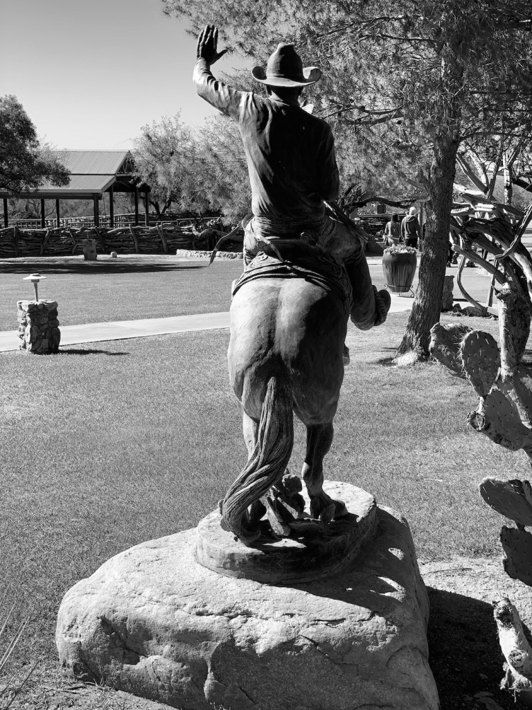 At the Cowboy Cookout one evening, the cowboy music conjured several javelinas from the surrounding darkness. I suppose they had been waiting for the city dudes to be seated with their grub, before materializing to lurk beneath the serving tables, snuffling for scraps of cornbread, shreds of pulled pork and brisket. A ranch employee came over and shooed them away, but the javelinas were back seconds later, nose to the dirt, eyes alert.
