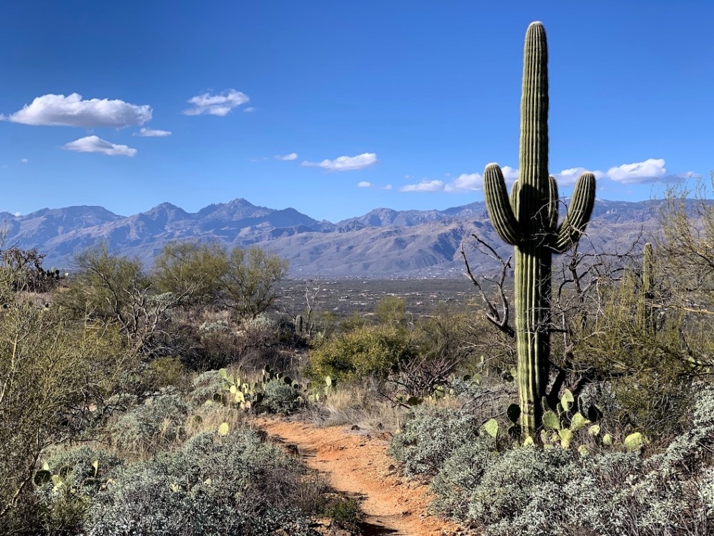 Alas I saw no Gila monsters on my hikes, even though I was smack dab in the middle of Gila monster country. These are the biggest and heaviest lizards in the U.S. They’re also venomous, as their orange and black mottling suggests. If you were to meet one, it would be like running into a fat-bellied salami, but with legs. And don’t you fret about that venom part, a pamphlet reassured me. Gila monsters are exceedingly slow moving. But the pamphlet also noted that Gila monsters dine mostly on birds, rabbits and mice. So I’ll take the “slow-moving” part with a grain of salt. I know for a fact that I can’t catch a bird with my teeth.
