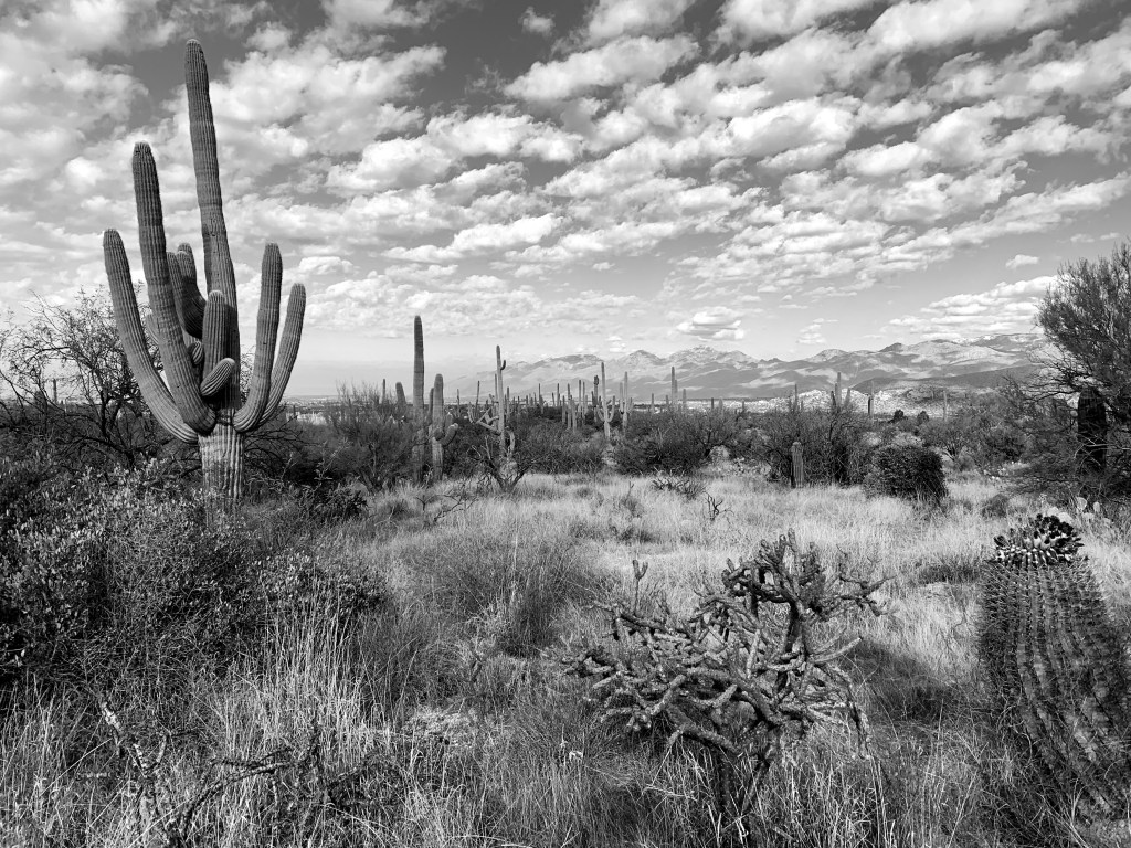 While out running one day, a coyote crossed the road a few metres ahead of me. I later saw a small lizard sunning itself on a rock. And then a scrap of dark fur scrambled across my path as I was hiking in Saguaro National Park.
