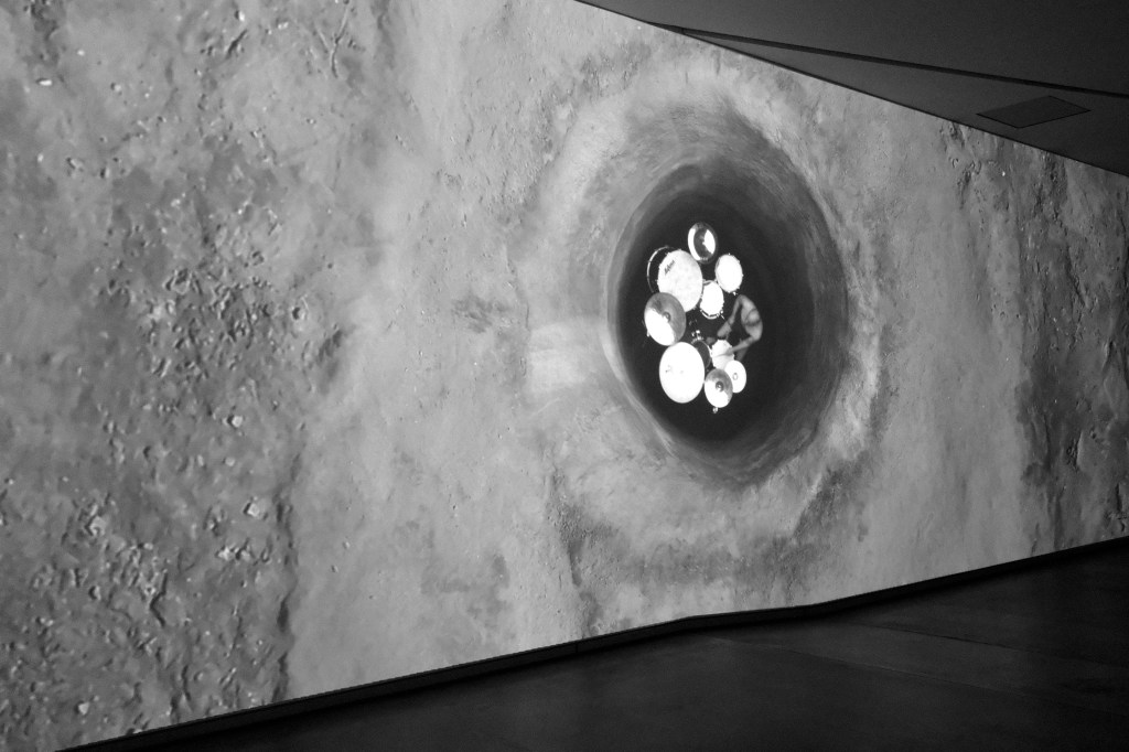 A video wall at the entrance to the Jewish Museum Berlin. If you look closely, inside the hole is a drummer pounding his kit. The experience is loud and jarring, and this is how you enter and begin your experience. As I said, the museum design is brilliant.