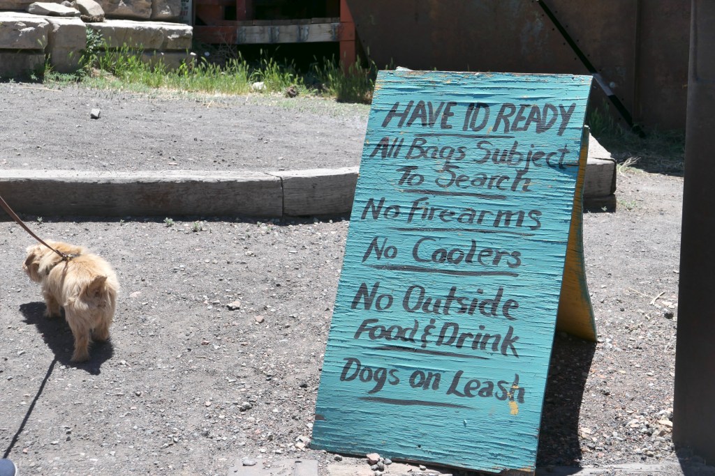 Instructions near the entrance to the Mine Shaft Tavern & Cantina.